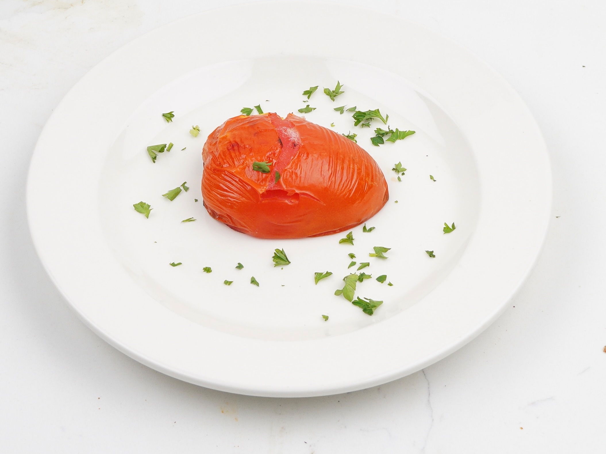 Smoked Eggplant & Tahini Puree, Extra Virgin Olive Oil, Pimento, Tomato, Parsley.