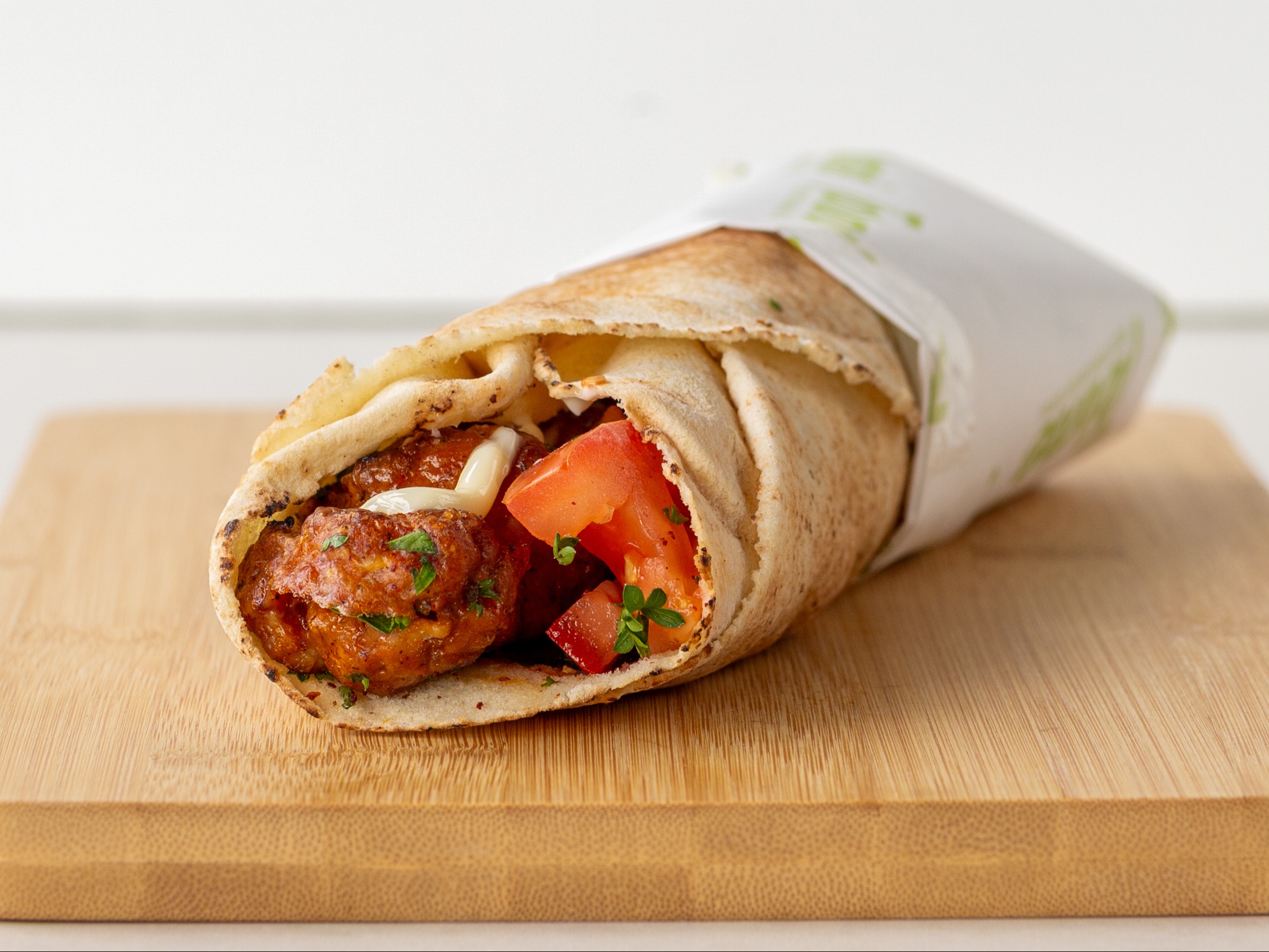 Flame-Broiled Angus Ground Chicken, Shaved Red Onion, Tomato, Parsley, Sumac, House Spread & Garlic Spread.